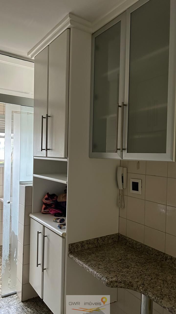 Apartamento com armários na cozinha e nos dormitórios.